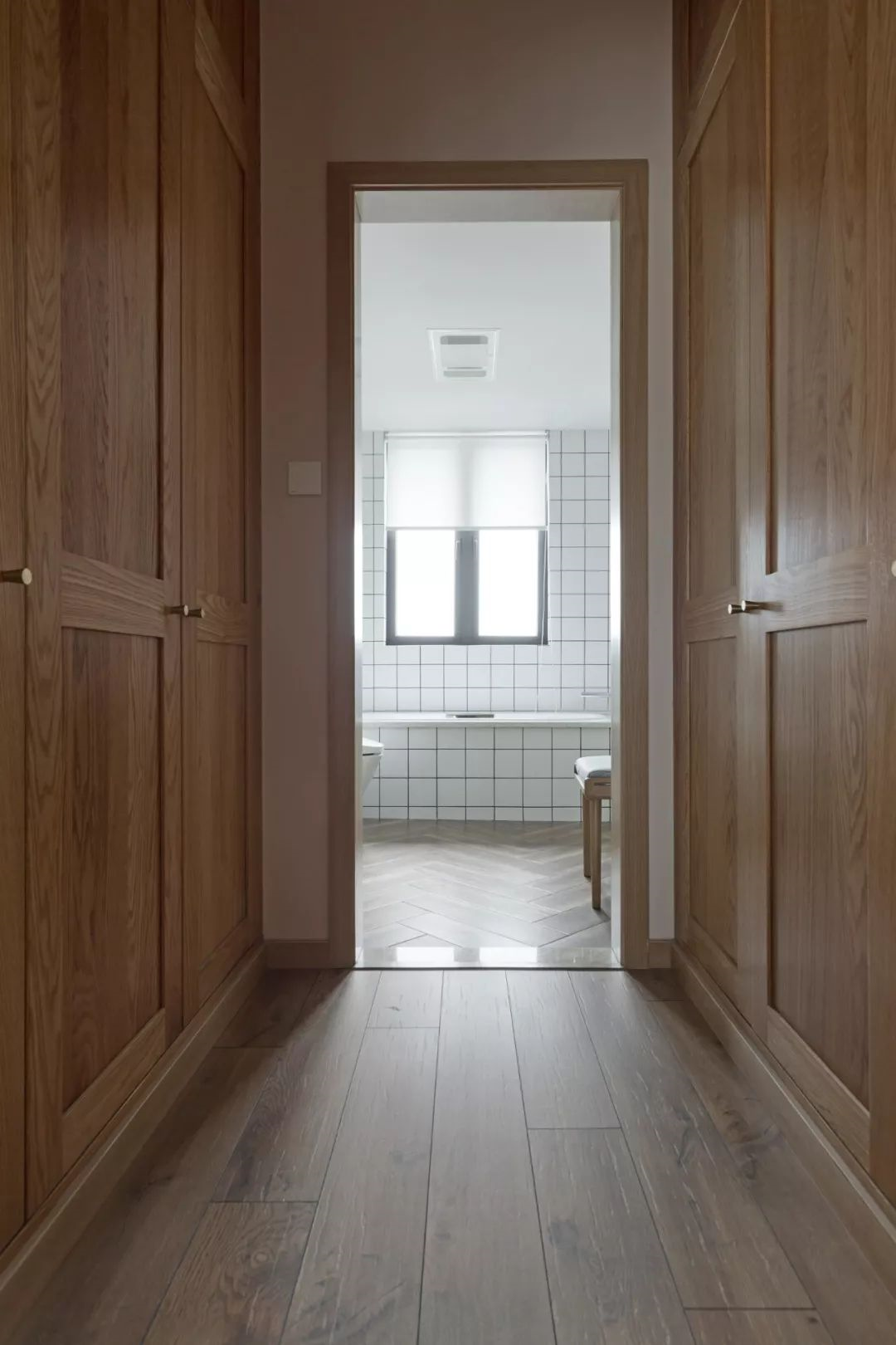 主臥與主衛(wèi)之間的走廊是被設(shè)計成了衣帽間,左右兩側(cè)做上到頂?shù)墓褡?,衛(wèi)生間內(nèi)部擺放一個浴缸,也方便屋主有著不同的淋浴需求。