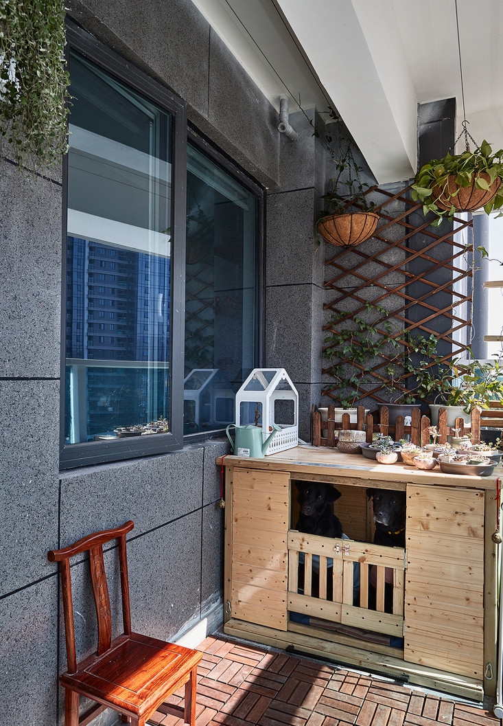 ▲ 陽臺(tái)上良好的格局規(guī)劃,讓屋主的生活更愜意,不僅為寵物安置了舒適的家,還有養(yǎng)花喝茶的美好時(shí)光。