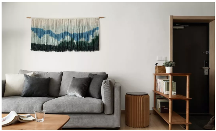 ▲ 選用了一款坐感舒適的沙發(fā),沙發(fā)背后的墻面用了一款比較特別的掛飾來(lái)修飾整個(gè)空間。