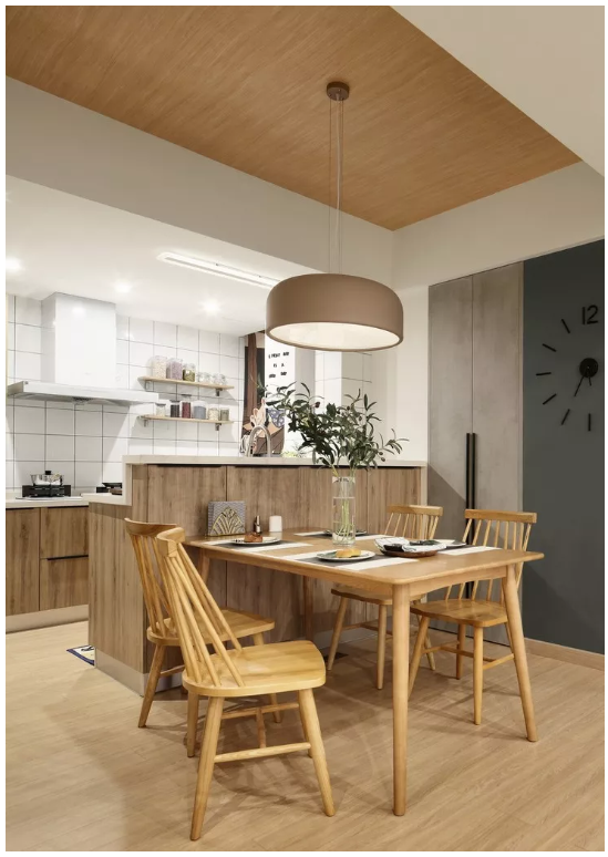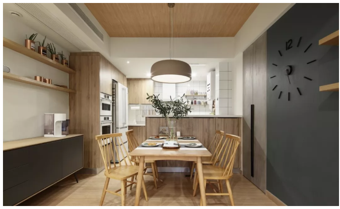 ▲ 餐廳面寬本身不算太大,但是設(shè)計(jì)師對(duì)整體空間的考量還是比較到位,日常的用餐和操作都比較便捷。