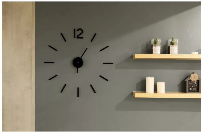 ▲ 選用了一款黑板墻紙,配上一款別致的時(shí)鐘,別有一番小資情調(diào)。
