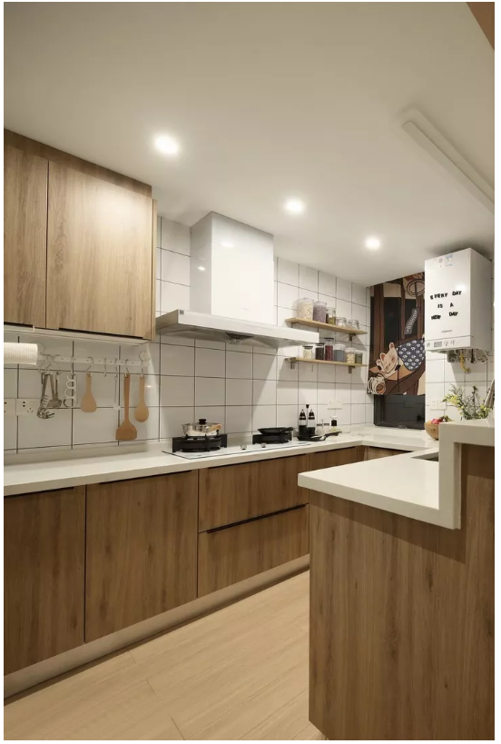 ▲ 開放式的廚房保證了每個(gè)家庭成員的交流毫無(wú)障礙。電器的合理擺放,本身也是廚房的一抹裝飾。