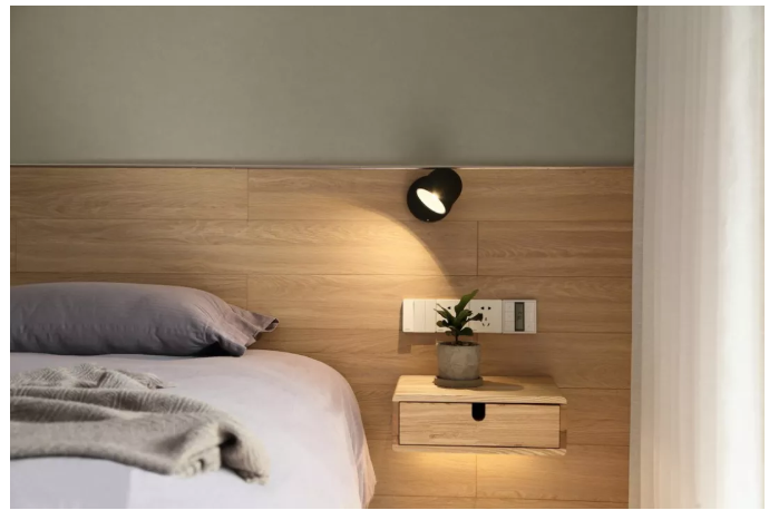 ▲ 懸空的床頭柜非常別致,下方設(shè)置燈帶,營(yíng)造輕盈靈動(dòng)的氛圍。