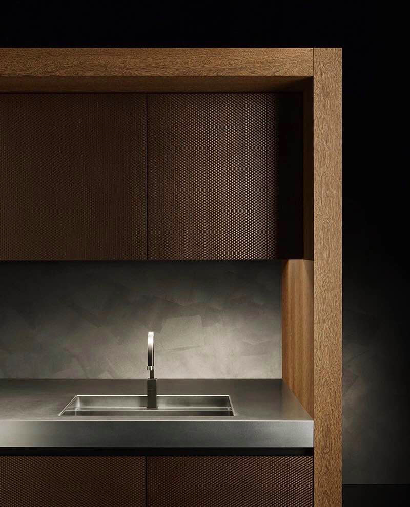 如果你家水槽做的是臺上盆或者淺水槽,會濺出來大量的水,可以考慮安裝擋水條,這樣可防止臺邊的水流到地上。