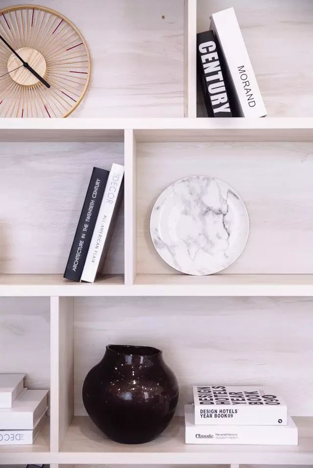 ▲餐桌椅后方設(shè)置了展示柜,擺放珍藏的書籍和裝飾品,美觀又實(shí)用。