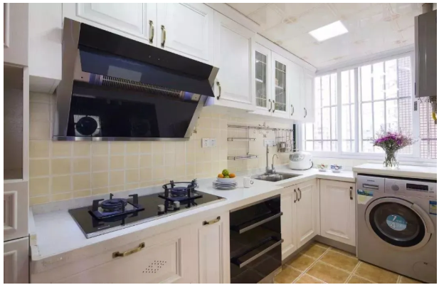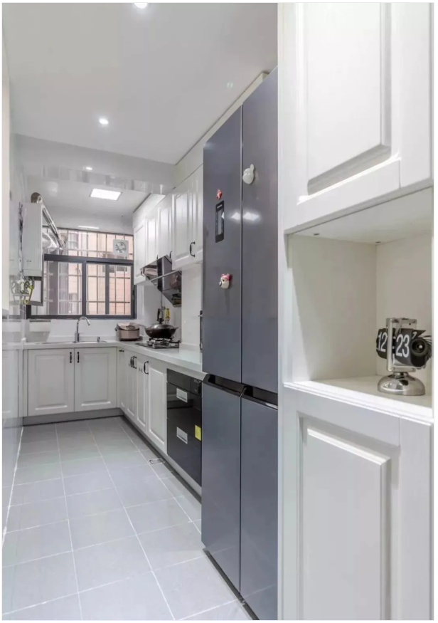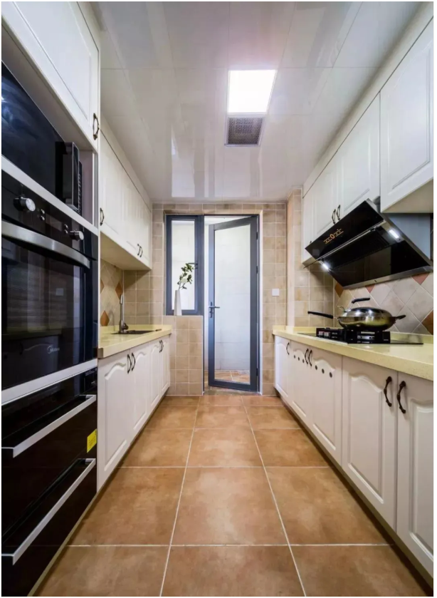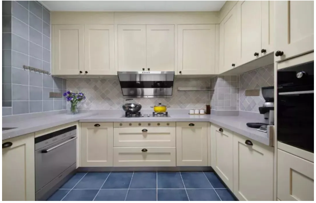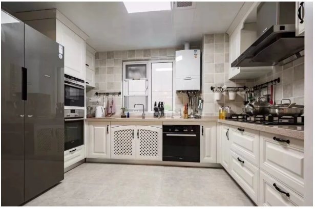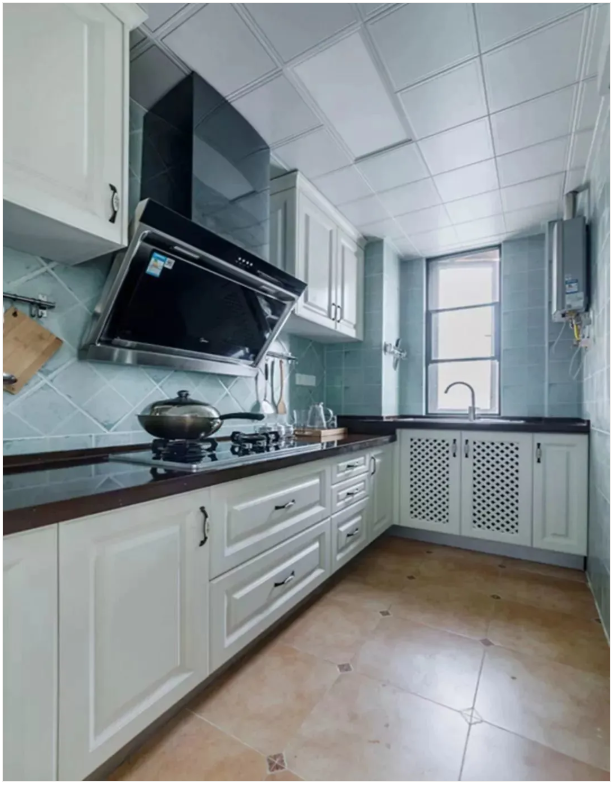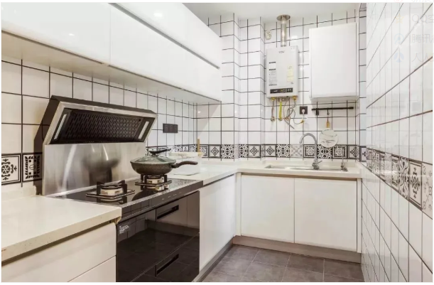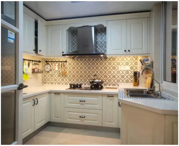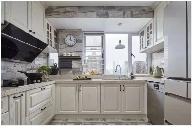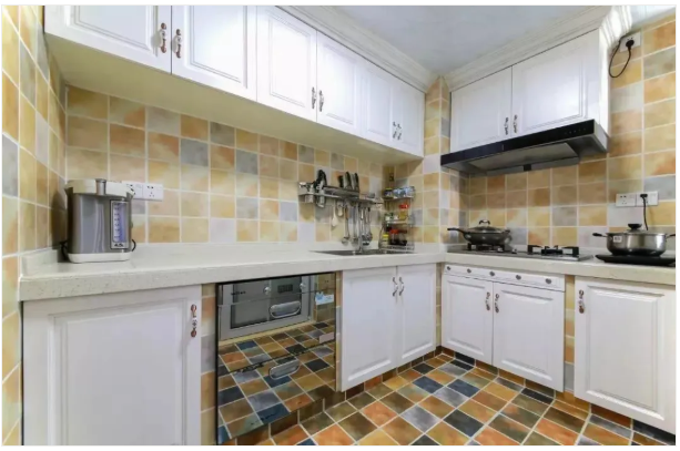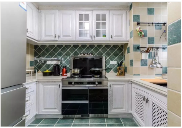 在一些比較歐美式的廚房,白色櫥柜門帶上紋理的話,結(jié)合仿古磚的搭配,整個空間會顯得更加優(yōu)雅大方。