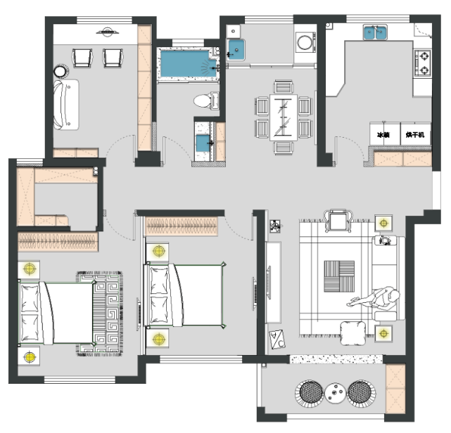 - 簡約風小戶型二居室,臥室里還擠出了衣帽間!