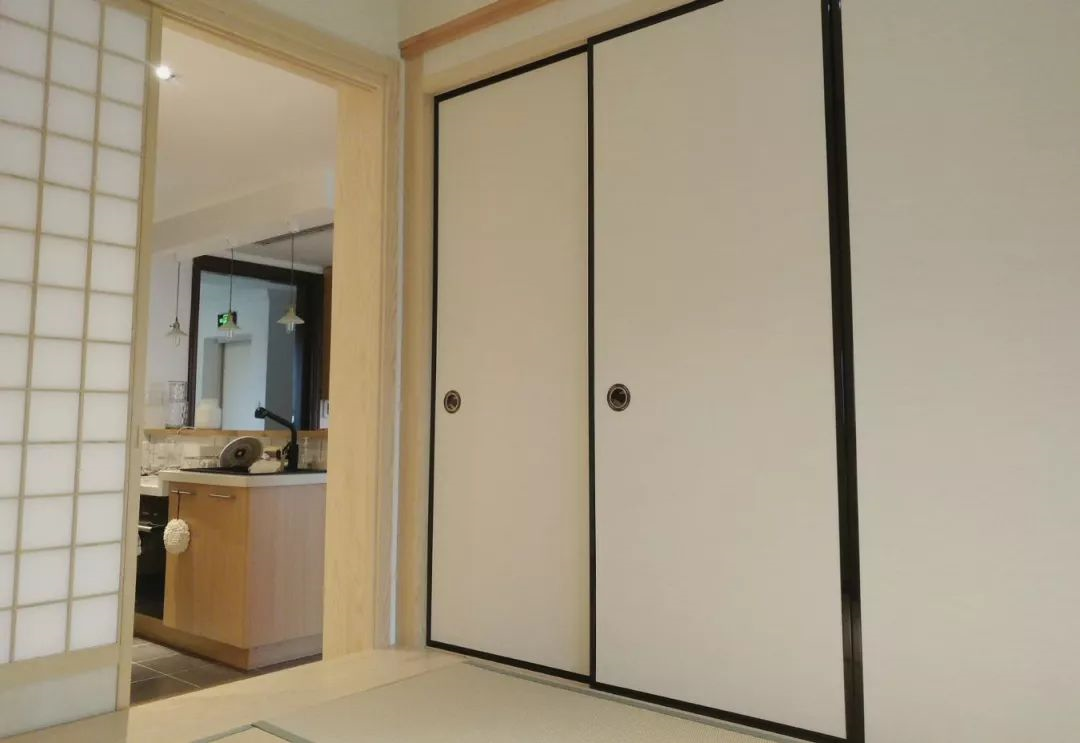 次臥所有的空間都用來(lái)改成了榻榻米,加上嵌入式的衣柜,這個(gè)空間的收納能力非常強(qiáng)。推拉的障子門也有很日式風(fēng)范。